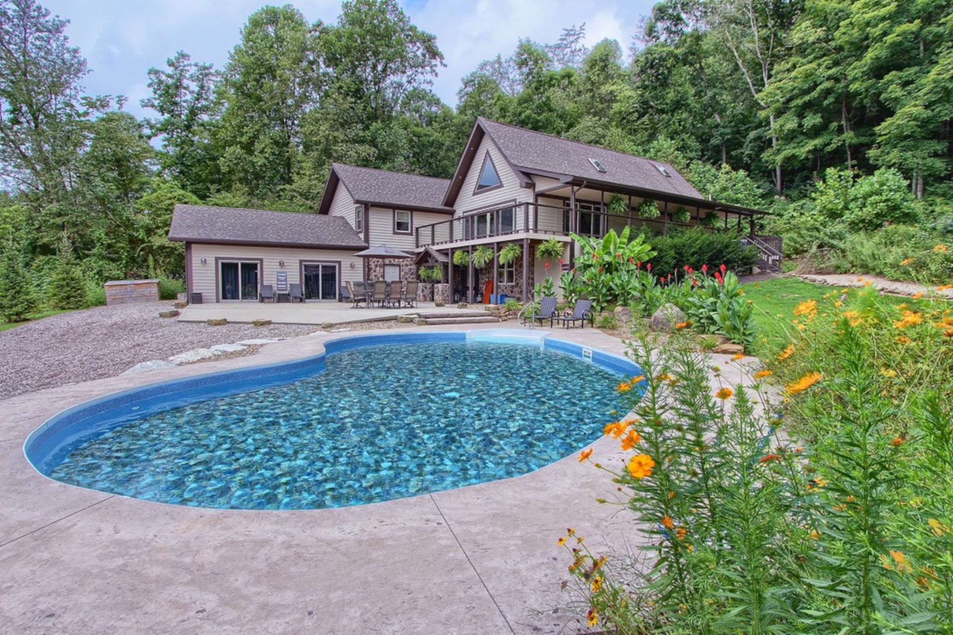 With room for 22 guests, Rush Resort is one of the most unique and well-appointed Hocking Hills Luxury Lodging experiences available. From this secluded getaway’s luxurious 7-bedroom + loft, 6-bathroom lodge, equipped with its own movie theater and large, heated swimming pool, to the meticulously groomed 21 acres of breath-taking southeastern Ohio.